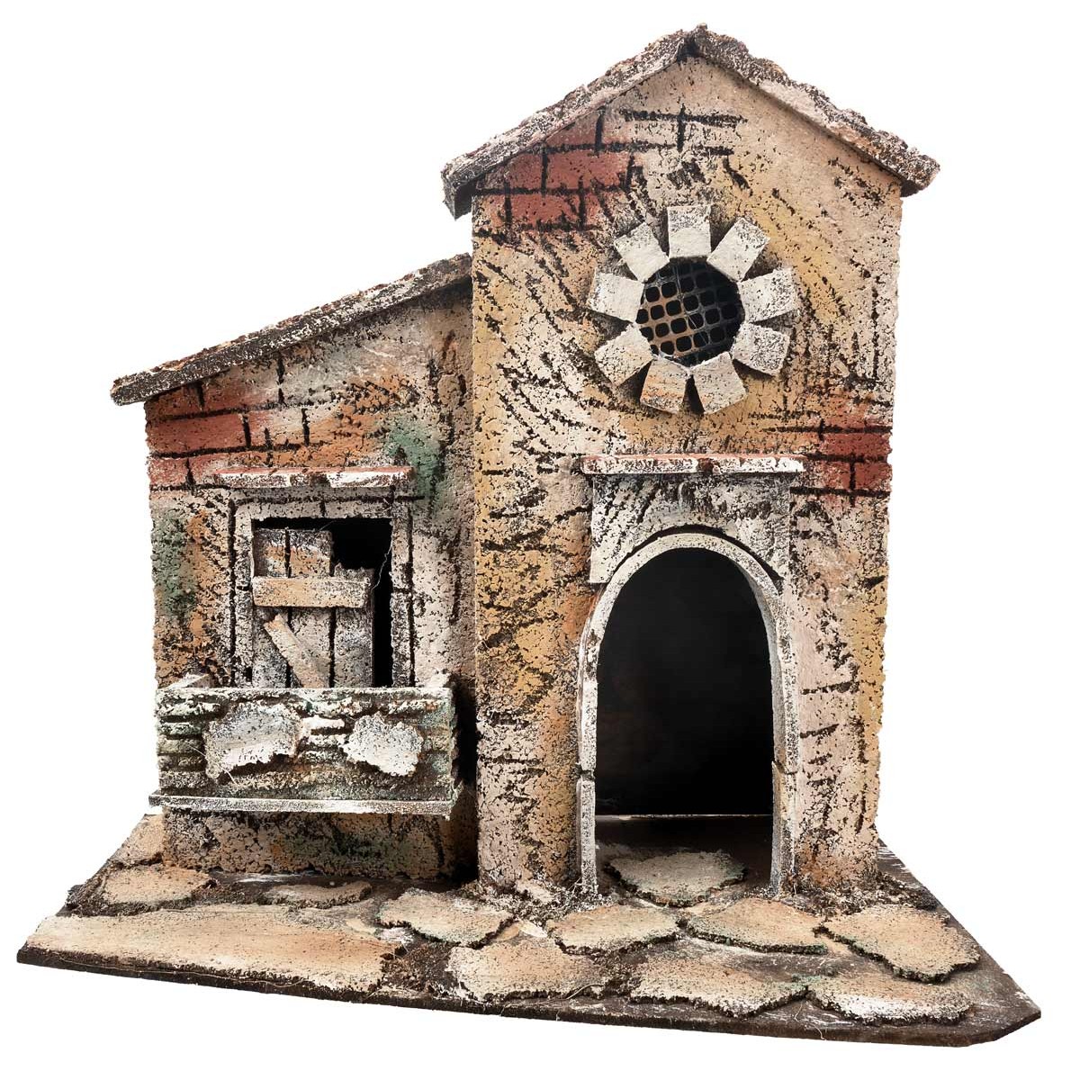 Casa napoletana con arco e finestra circolare, adatta per statuine di altezza 7-10 cm.