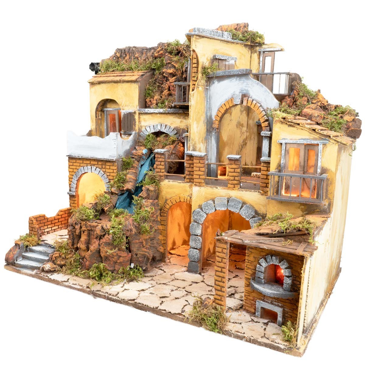 Presepe con borgo illuminato con cascata 60x40
