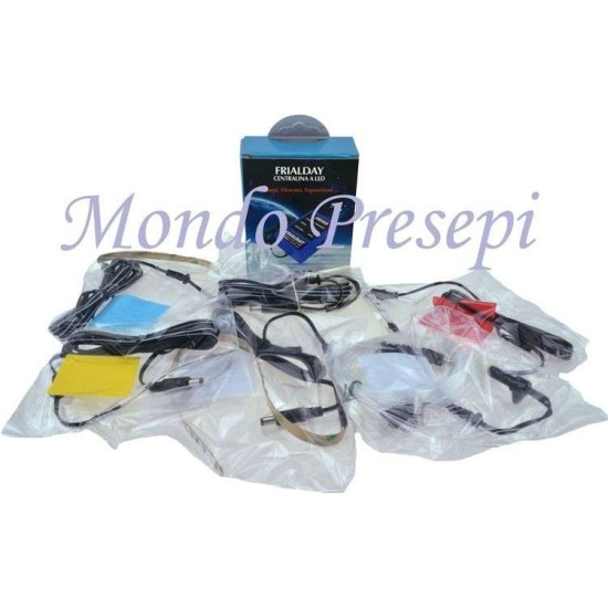 Kit offerta comprende la centralina a LED FRIALDAY, più un set di accessori perfettamente calibrato per l'illuminazione di un Diorama o Presepio di piccole dimensioni.