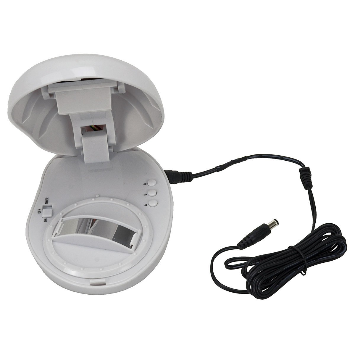Il dispositivo va posizionato alla base del cielo del vostro presepe. Può essere collegato in dissolvenza su centraline della linea professionale. La luce che emette colpisce uno specchio presente nel dispositivo e viene riflessa nel cielo con i colori tipici dell'arcobaleno.