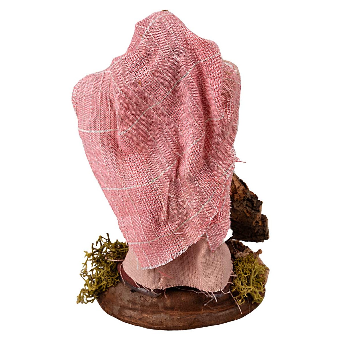 Lavandaia in terracotta, alta 12 cm, vestita con abiti in tessuto. La statuina è snodabile, consentendo di assumere diverse pose, ideale per aggiungere dinamismo al presepe. Lavorata artigianalmente, presenta dettagli e colori che possono variare, rendendo ogni pezzo unico e irripetibile. Perfetta per un tocco autentico e personalizzato nella tua scena natalizia.