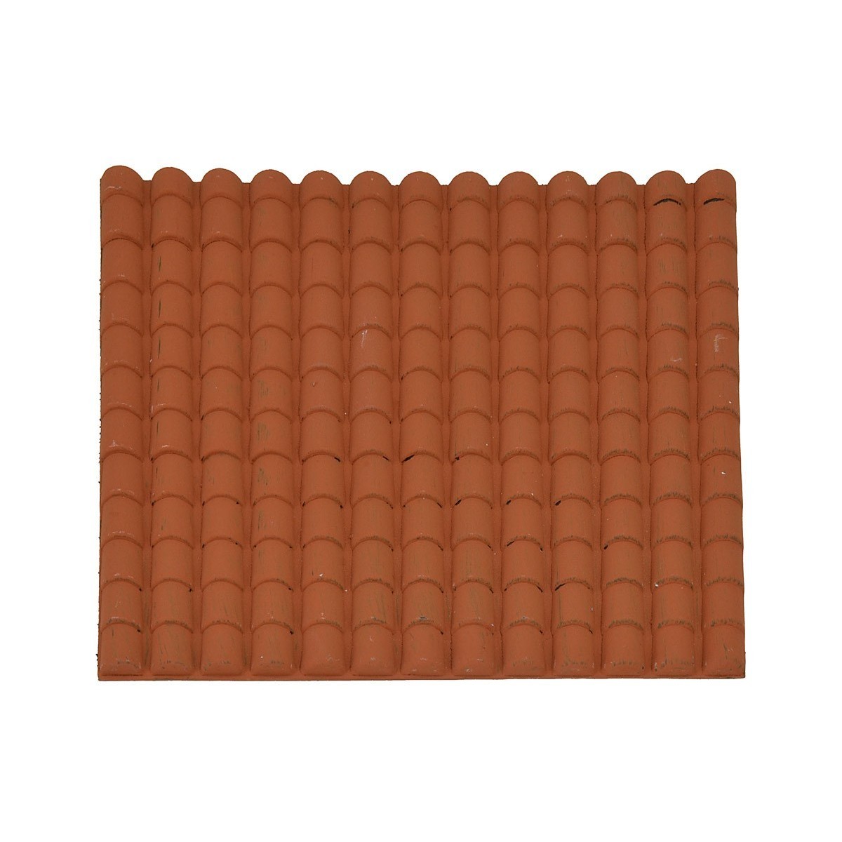 Pannello formato da coppi in plastica di colore terracotta, ideale per la costruzione di case per il presepe fai da te, è possibile tagliarlo con la forbice o taglierino.