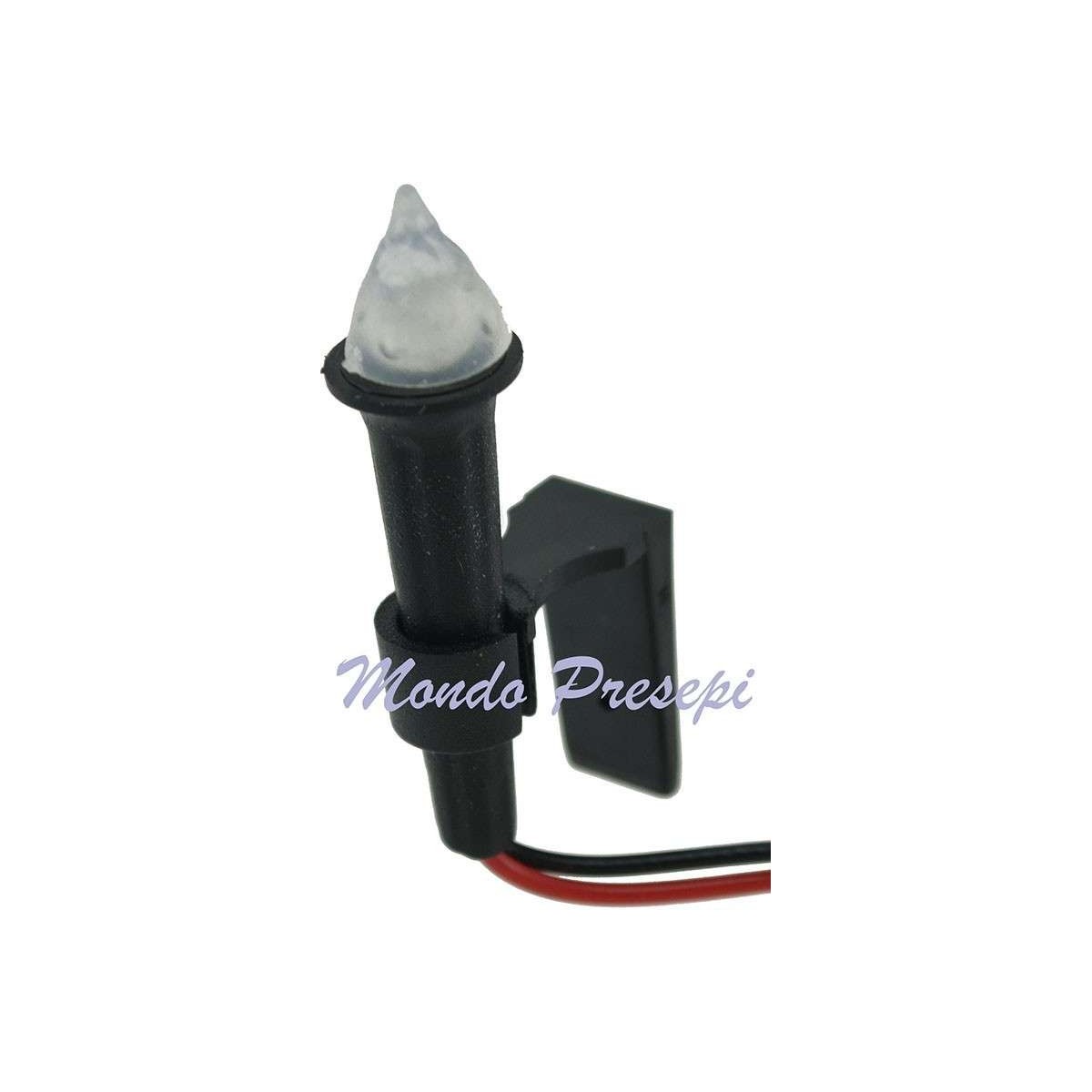 Torcia con fiammella da 8 mm tremolante a led luce gialla, la fiaccola necessita di un alimentazione da 3 a 12 volt. Per il funzionamento si può collegare ai terminali del filo la spina per la bassa tensione (non inclusa), la spinetta poi dev'esser inserita nell'alimentatore con multipresa a tensione variabile disponibile a 5 o 10 prese. In alternativa alla spinetta, ai terminali del filo si possono collegare i comuni morsetti che verranno a loro volta inseriti nell'alimentatore universale tagliando lo spinotto presente. Tutti gli accessori sopra citati, li potete trovate sotto la tabella nei prodotti correlati.