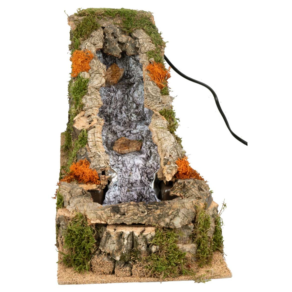 Cascata per presepe, funzionante a corrente, presenta una struttura inclinata che facilita lo scorrere naturale dell'acqua.