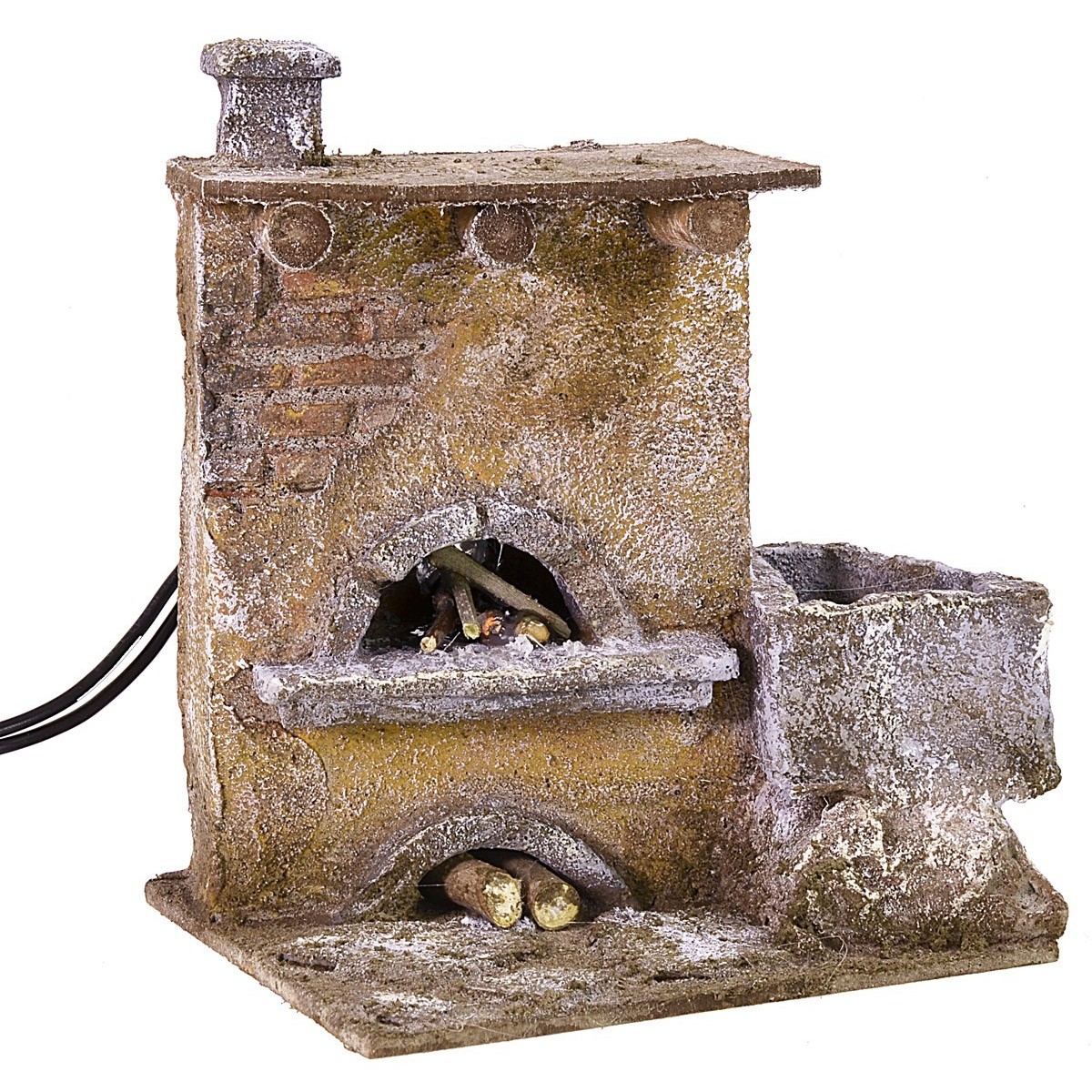 Forno (con vasca laterale per braci o porta pasta)per Presepe stile classico popolare realizzato artigianalmente in polistirene e legno, consigliato per statue di altezza 10 cm. Con  luce