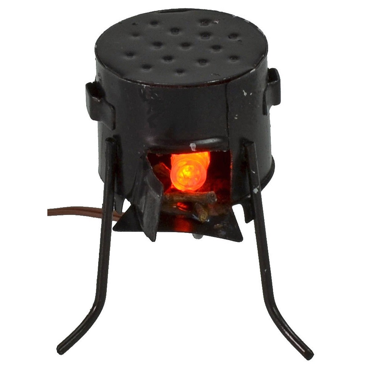 Stufa braciere con sportello semiaperto, funzionante a bassa tensione 3,5v con led tremolante che simula l'effetto braci. L'articolo è consigliato per statue di altezza 10-12 cm ed è completo di spinetta, sarà a discrezione dell'acquirente scegliere se utilizzare il trasformatore o il portapile per farlo funzionare. Gli accessori necessari all'azionamento non sono compresi, ma  sono disponibili nei prodotti correlati sotto la tabella.