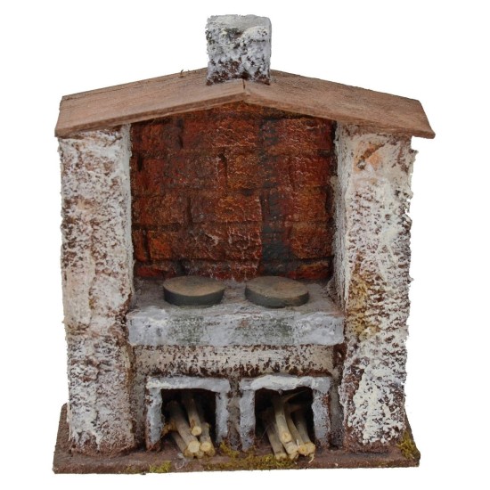 Forno con camino centrale per presepe cm 14x6,5x17,5 h. per statue 12 cm