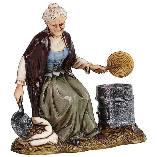 Castagnara seduta con braciere cm 12 Landi Moranduzzo, la sopracitata serie è caratterizzata da statue ben rifinite nei dettagli, con volti espressivi e dall'utilizzo di colori molto realistici.