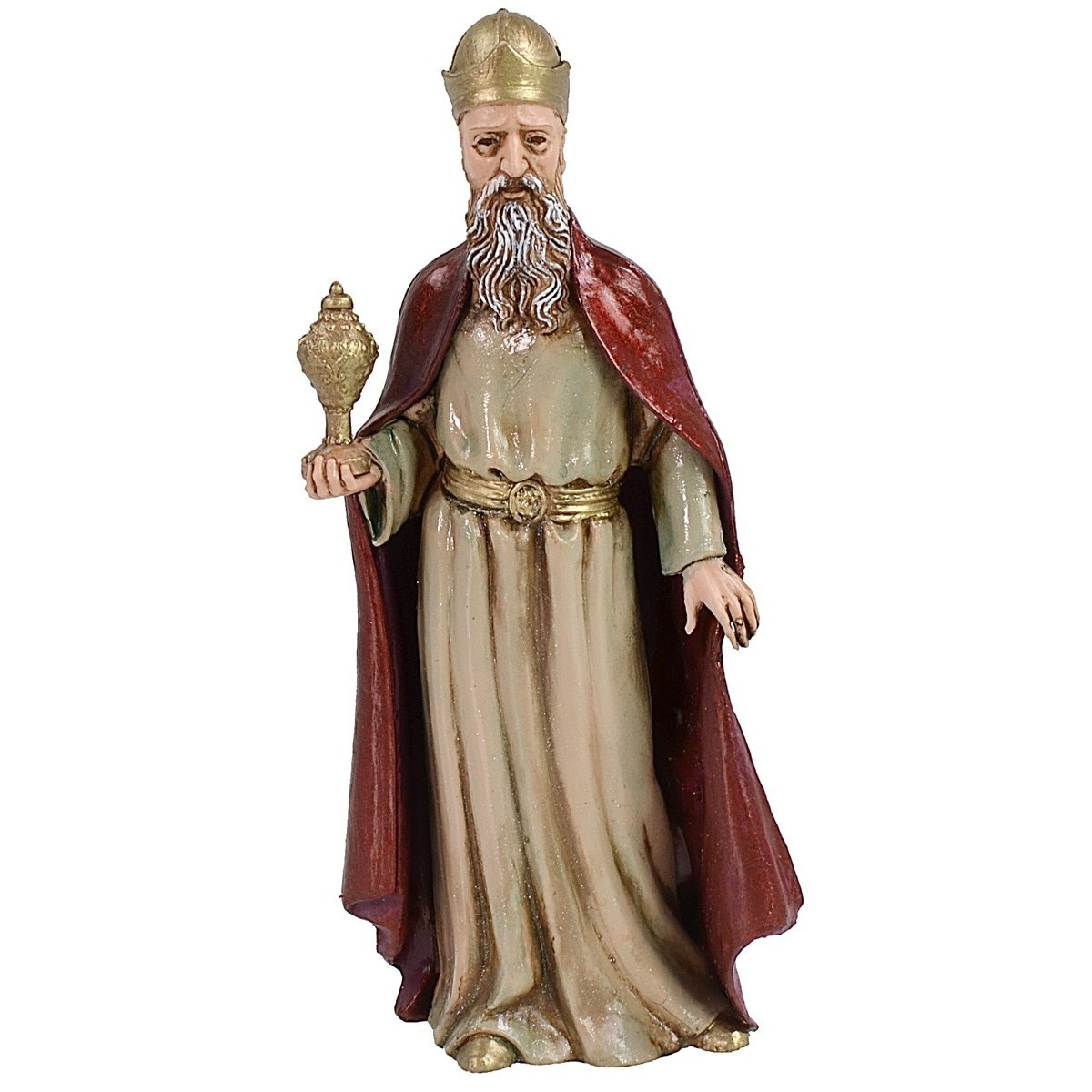 Tre Re Magi in piedi cm 12 Landi Moranduzzo, la sopracitata serie è caratterizzata da statue ben rifinite nei dettagli, con volti espressivi e dall'utilizzo di colori molto realistici.