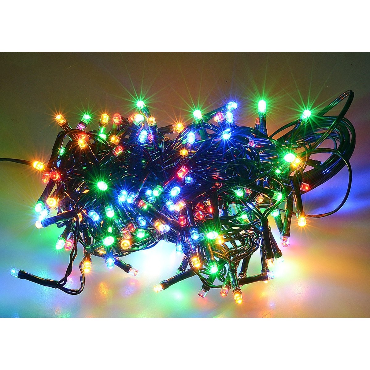 Catena lunga 14 metri con 180 led colorati, è adatta sia per ambienti interni che per l'esterno. Ogni led ha una distanza di 5cm ed completa con giochi d luce.