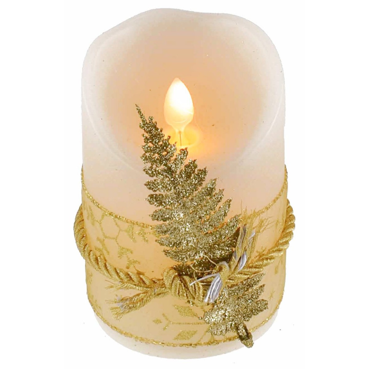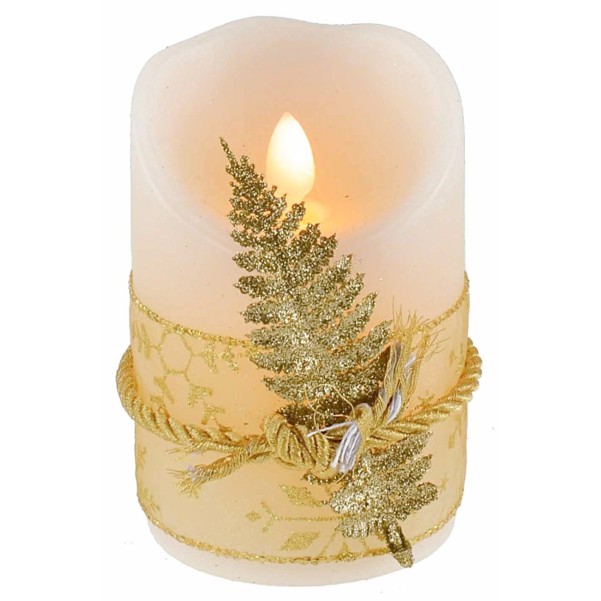 Candela con fiamma, illuminata da un led a luce fissa funzionante a batterie (2xAA non incluse). Questo articolo è arricchito da nastro con foglia d'oro, uniti da un cordoncino. Questo articolo può essere abbinato alle lanterne disponibili sul nostro sito.