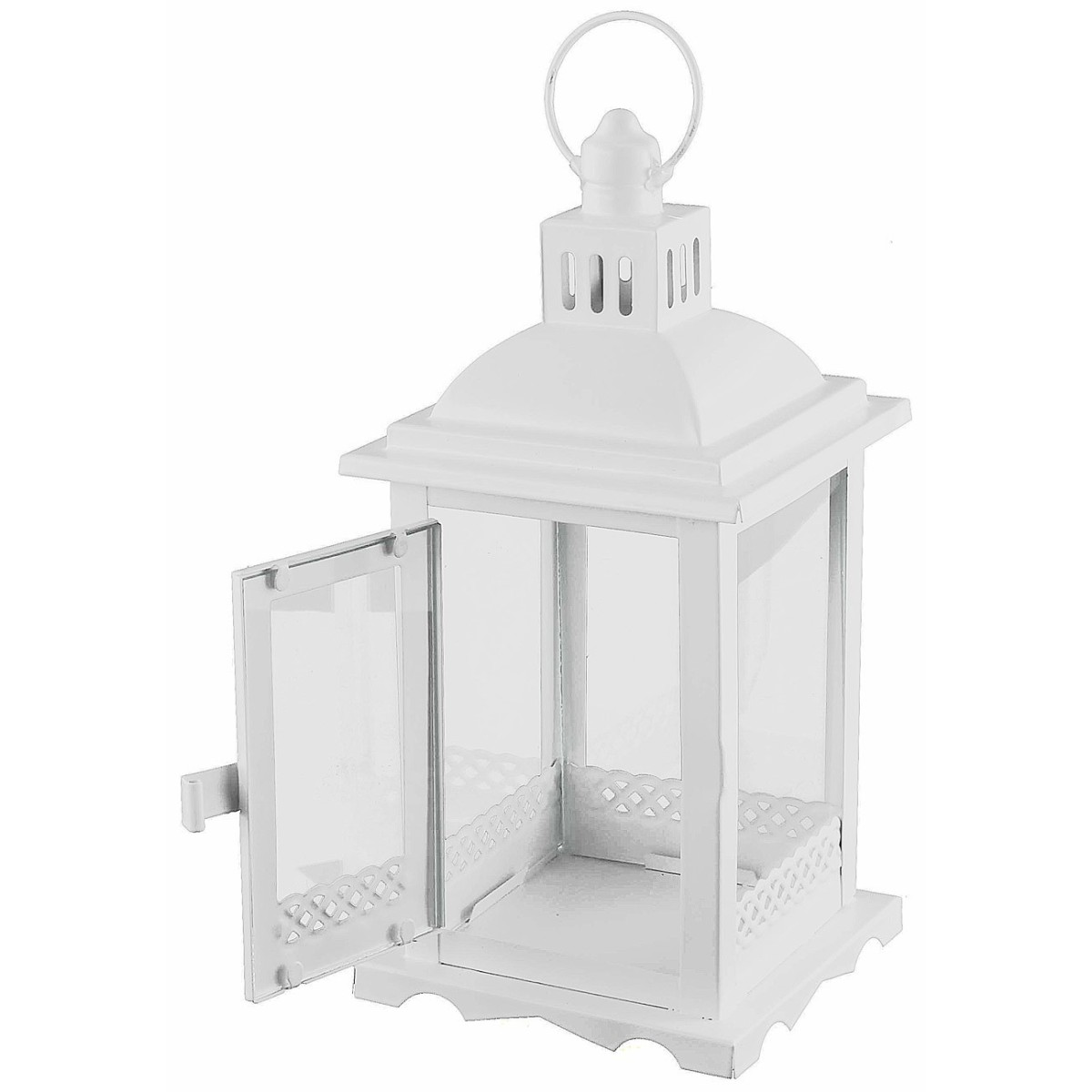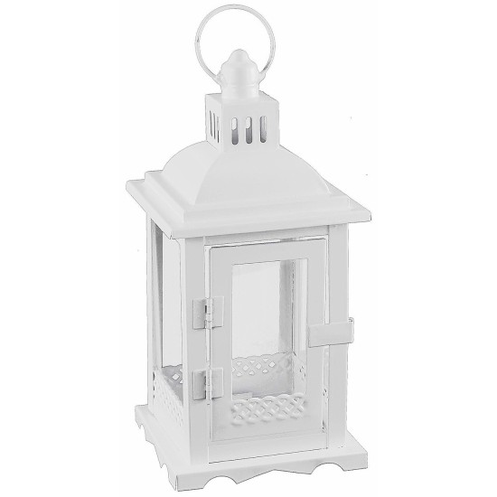 Lanterna bianca in metallo con base lavorata e sportello che si apre permettendo di posizionare all'interno lumini o candele. Sul nostro sito sono disponibili varie tipologie di articoli per illuminarla.