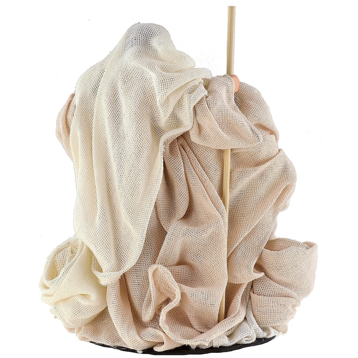 Sacra Famiglia in blocco composta da: San Giuseppe con bastone, Madonna in piedi con bambinello tra le braccia. La natività è realizzata in resina con abiti in tessuto.