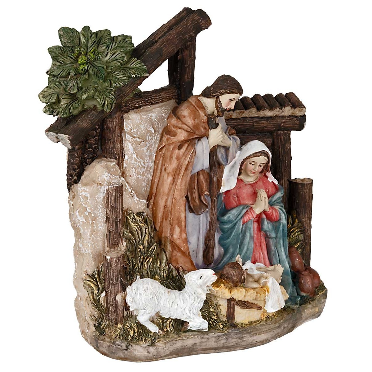 Natività  in resina con San Giuseppe, Maria inginocchiata, Gesù Bambino in culla e pecorella. Natività  in resina con San Giuseppe, Maria inginocchiata, Gesù Bambino in culla e pecorella. Natività  in resina con San Giuseppe, Maria inginocchiata, Gesù Bambino in culla e pecorella.