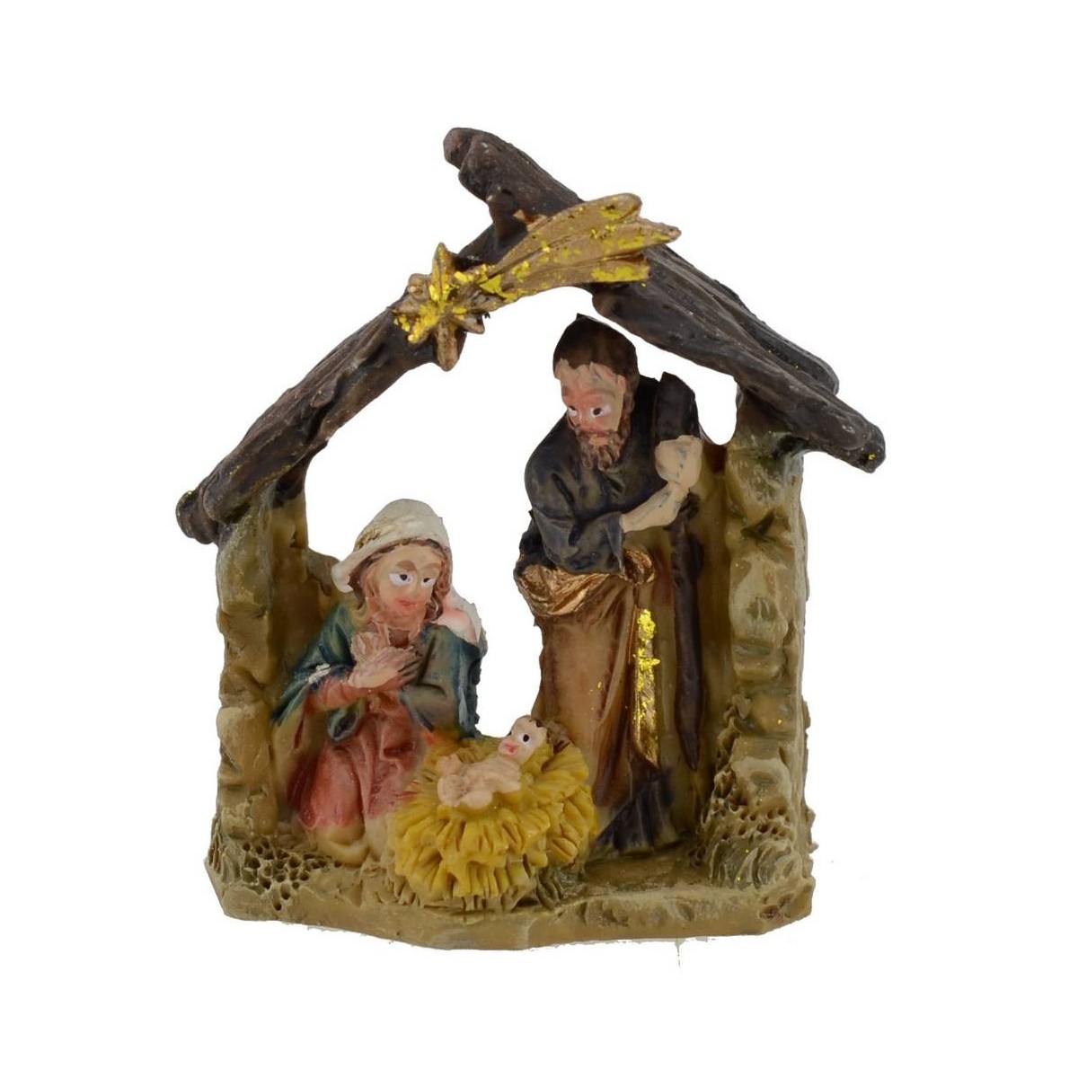 Natività in resina con capanna e stella cometa monoblocco .