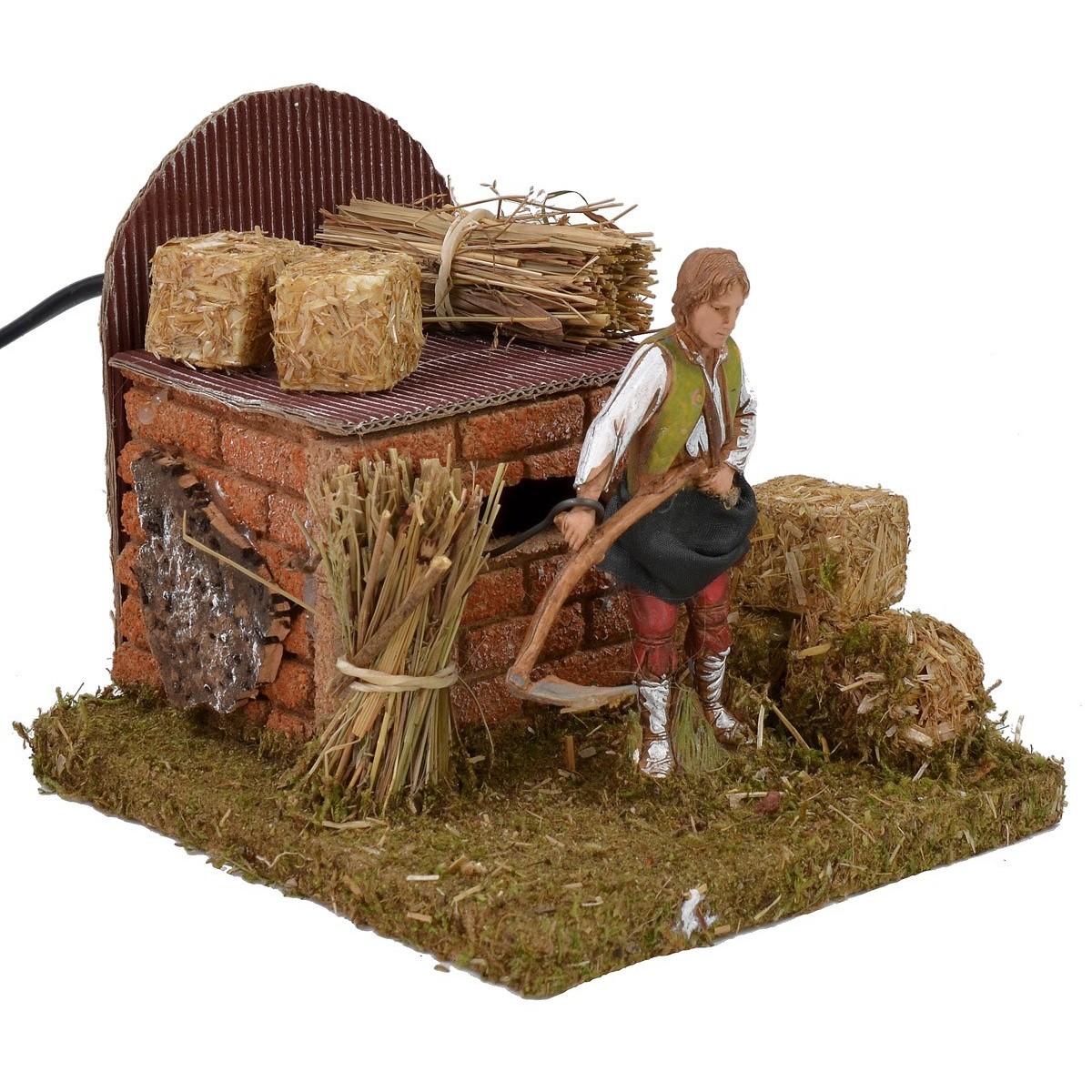 L'articolo rappresenta un uomo con in mano una falce per tagliare l'erba. Nell'ambientazione vi sono numerosi dettagli come delle balle di erba ormai secca e dei fasci di legnetti. Alle spalle del contadino vi è una costruzione costituita da dei finti mattoni rossi. Il prodotto fa parte della serie 10 cm Landi Moranduzzo in movimento ed è alimentato dunque a corrente. Ha un'altezza reale di 9 cm.