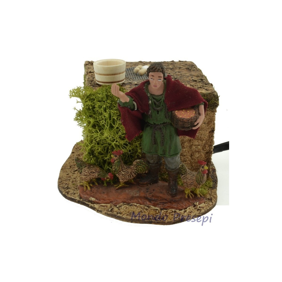 Statua Oliver serie cm 8 in movimento, contadino spargi becchime alza e abbasa il braccio.