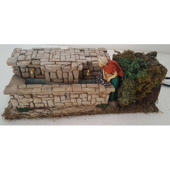 Lavatoio in resina con 2 uscite d'acqua completo di pompa + movimento della Lavandaia serie Landi 10 cm, il tutto funzionante a corrente.