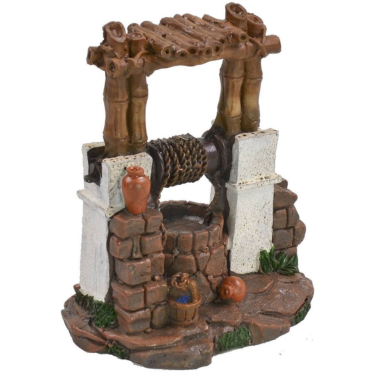 Pozzo per Presepe in resina in stile classico Popolare ben rifinito. E' consigliato per statue di altezza 6-8 h cm, in base ai propri gusti e preferenze. Vicino al pozzo sono presenti minuterie come anfore ed un secchio con corda per raccogliere l'acqua. Il pozzo è un simbolo necessario per completare la scenografia degli ambienti esterni del Presepe e arricchirlo. Il prodotto è realizzato artigianalmente in Italia utilizzando la resina.