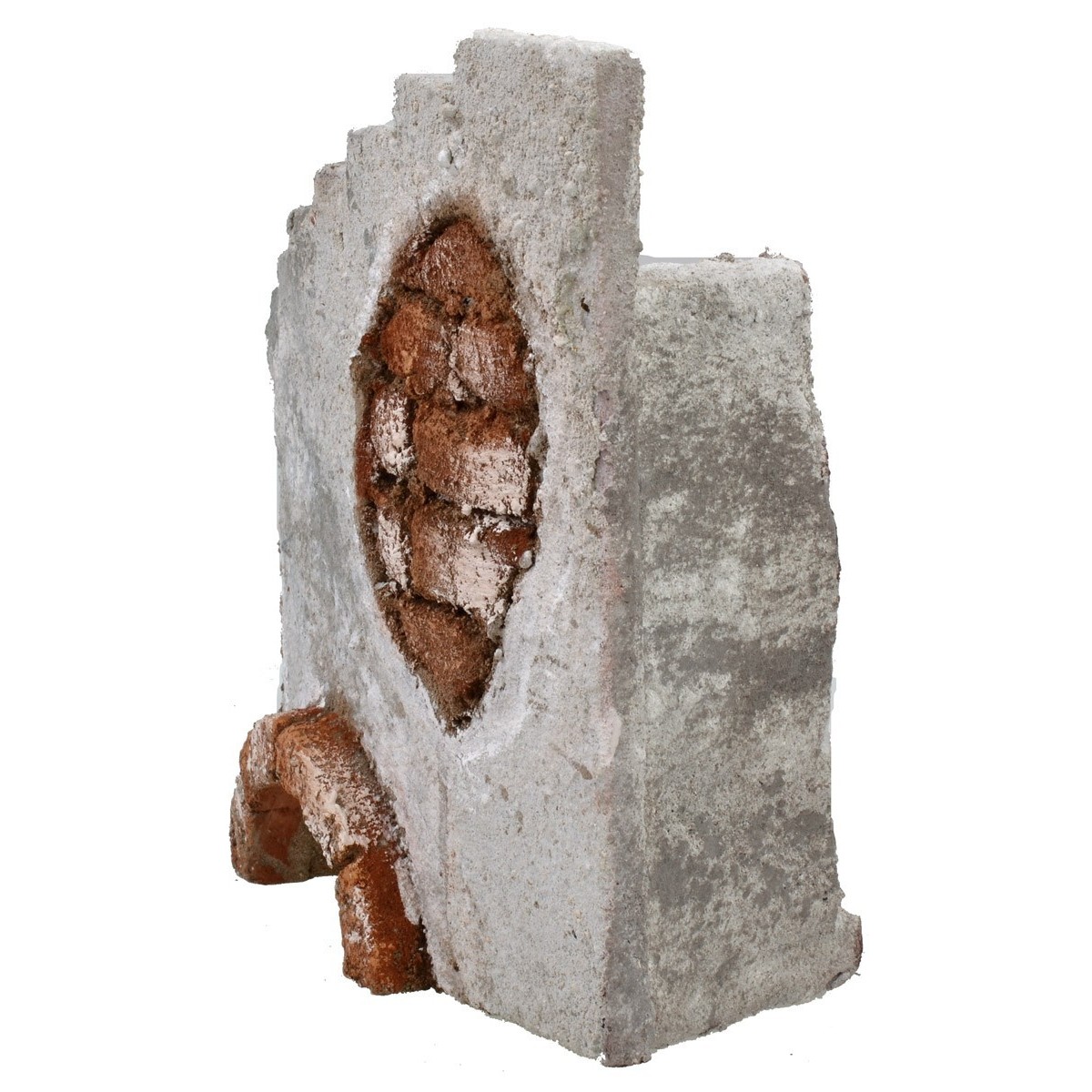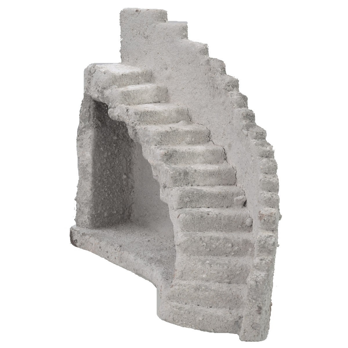 Facciata di un antico castello per presepe in stile classico popolare. Dietro la facciata si estende una lunga scalinata dove sarà possibile posizionare statue di altezza cm 8-10-12 in base ai propri gusti e preferenze. In basso alla scenografia è presente una conca ad arco, sotto la quale si potrebbe fare scorrere un corso d'acqua. Articolo artigianale realizzato in polistirene e dipinto a mano.