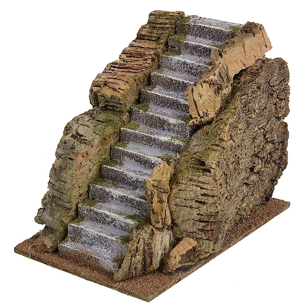 Scala artigianale per presepe realizzata in polistirene, legno e sughero, consigliata per statue altezza 10-12 cm. Questo elemento conferirà maestosità alla scenografia in cui sarà collocato.