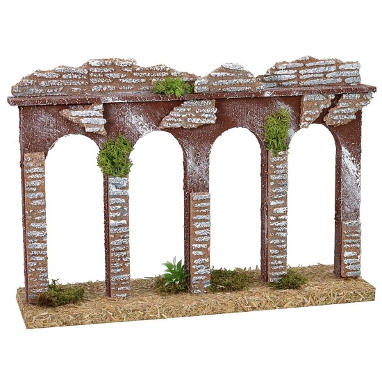 Acquedotto romano che incanalava acqua dalle fonti montane per portarla nei villaggi abitati a valle, pezzo caratterizzato da alte arcate con pareti e mura superiori rifinite da mattoncini bianchi. Questo articolo è consigliato per statue di altezza 5-6 cm ed stato realizzato con legno, sughero e muschio.