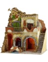 Presepe artigianale illuminato dallo stile classico-napoletano, caratterizzato da un mulino ad acqua nella parte inferiore del Presepe, ed un mulino a vento nella parte alta. La scenografia si presenta ben rifinita nei dettagli: al piano inferiore è presente un' ampio spazio delimitato da un ingresso ad arco, all'interno del quale sarà possibile collocare statue di Natività di altezza consigliata 10-12 h cm in base ai propri gusti e preferenze, alcune delle quali visionabili nei prodotti correlati. Inoltre, sempre al piano inferiore, è presente un mulino ad acqua (si precisa che il corso d'acqua, seppur molto realistico è solo dipinto a mano), ed un deposito per paglia/attrezzi. In tutta la zona inferiore è possibile collocare statue a proprio piacimento della medesima dimensione. Dalla zona bassa si estende una lunga scalinata che conduce fino al piano superiore, dove sono presenti due abitazioni caratterizzate da una grande terrazza ed un mulino a vento. Anche qui, si consiglia di posizionare statue di dimensione 10-12 h cm. Regalano un'atmosfera suggestiva le luci, funzionanti a corrente, che illuminano il paesaggio. Inoltre, l'utilizzo del muschio e della corteccia rende il paesaggio molto realistico, in quanto fitto di verde vegetazione e pareti rocciose circostanti. Prodotto realizzato interamente da sapienti mani artigiane. Articolo realizzato interamente in Italia da sapienti mani artigiane, utilizzando il sughero, il legno ed il muschio.