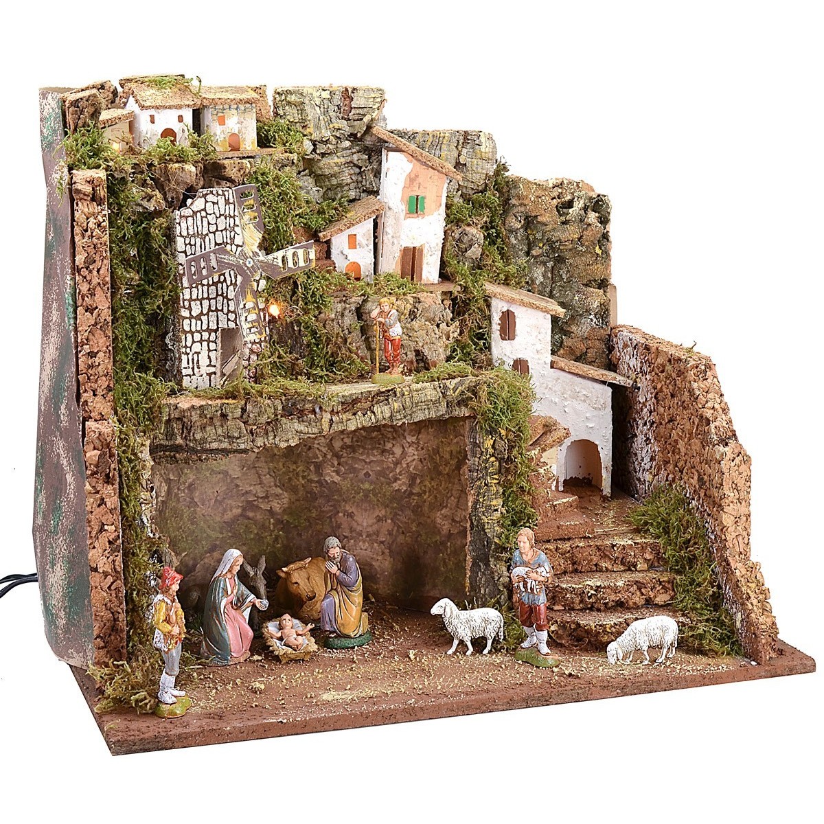 Presepe illuminato con mulino a vento cm 45x30x37,5 h Mondo