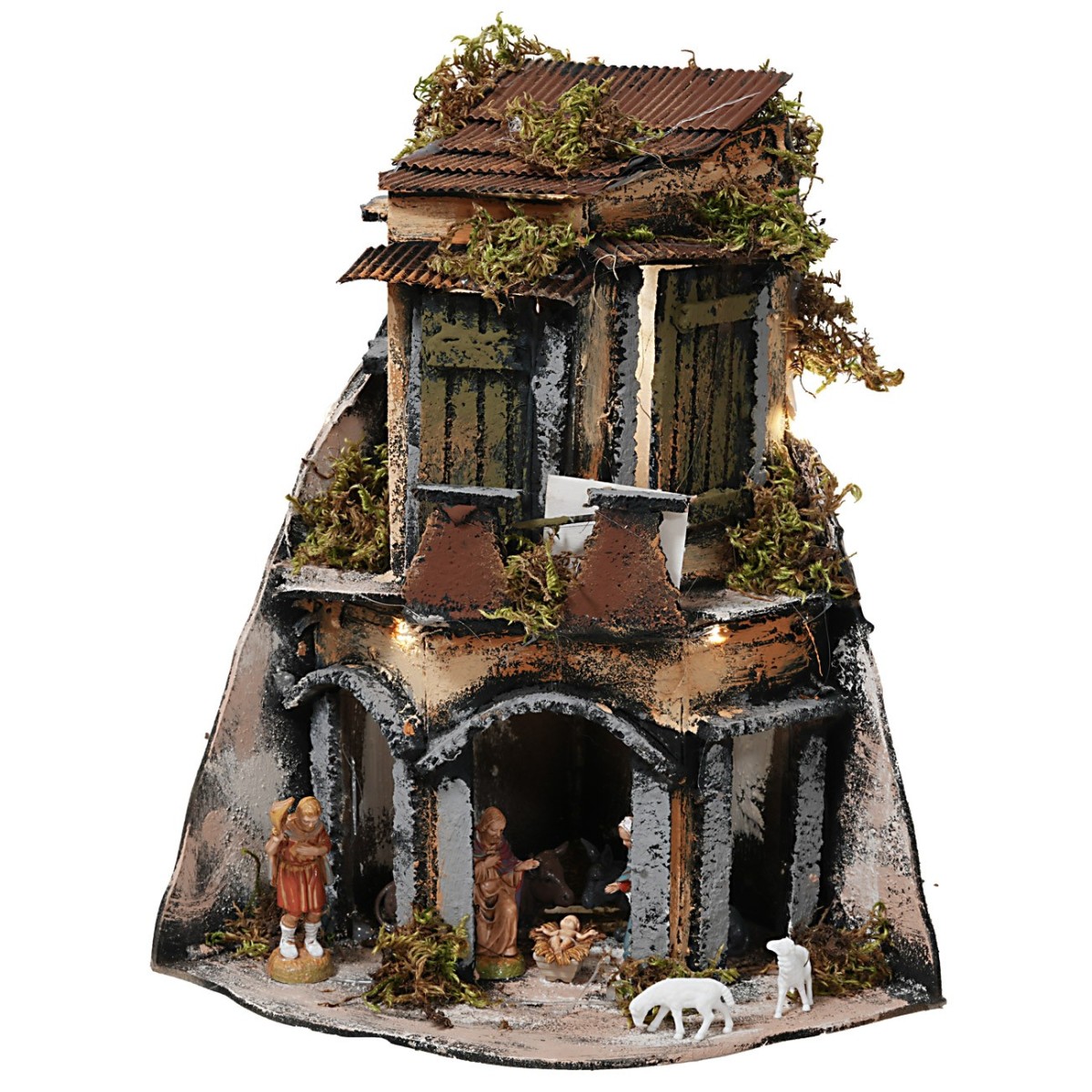 Al piano inferiore sono presenti diversi accessi aperti dove è collocata la Natività della serie Landi Moranduzzo da 6 cm, mentre a quello superiore una balconata con due porte chiuse da ante in legno.
