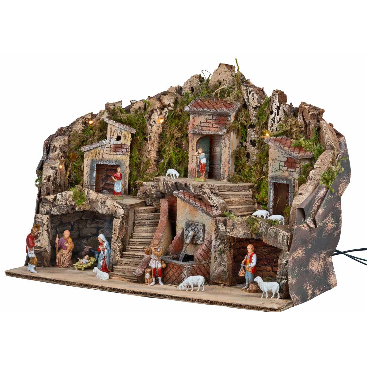Presepe con luci e fontana funzionante completo di statue Landi cm 50x25x35h