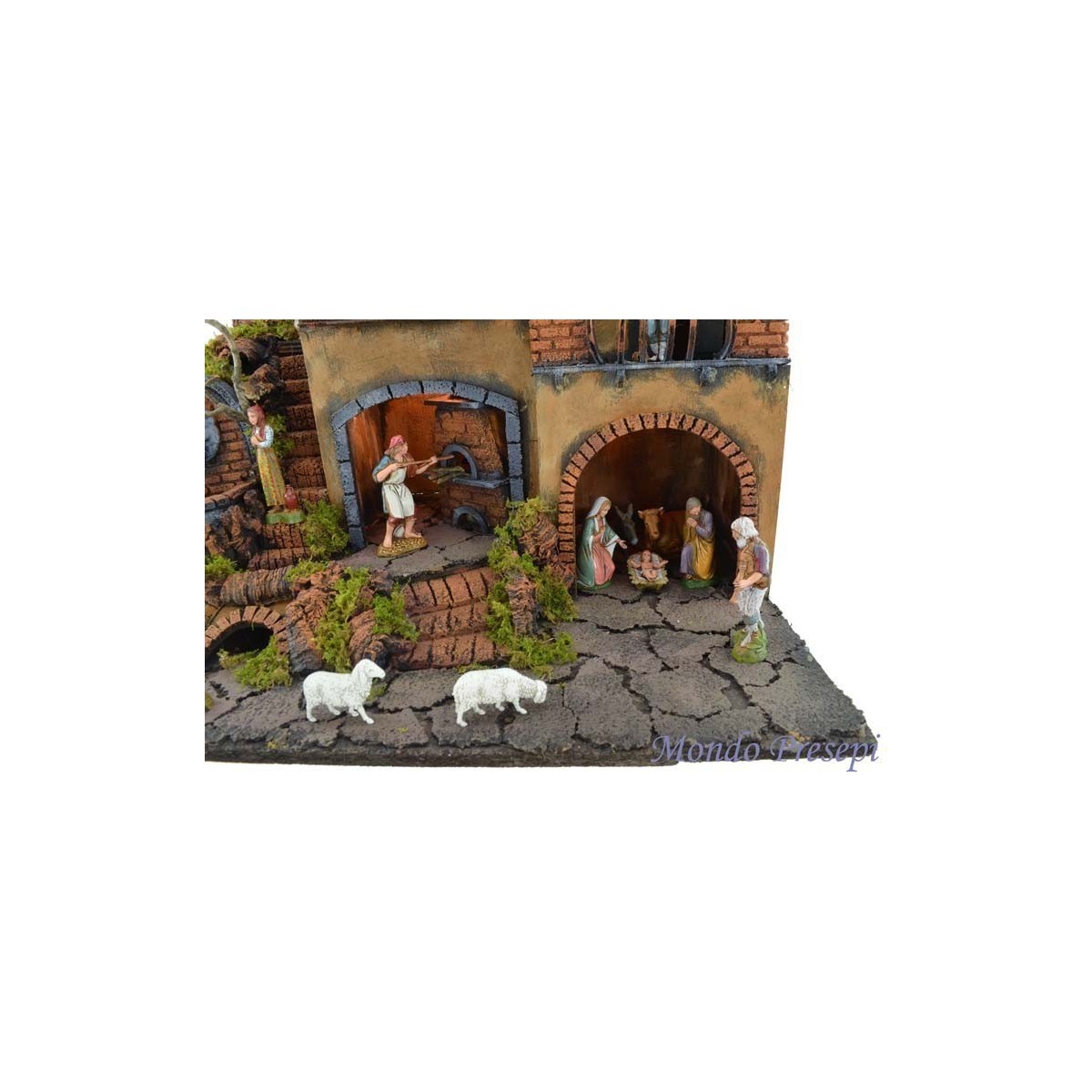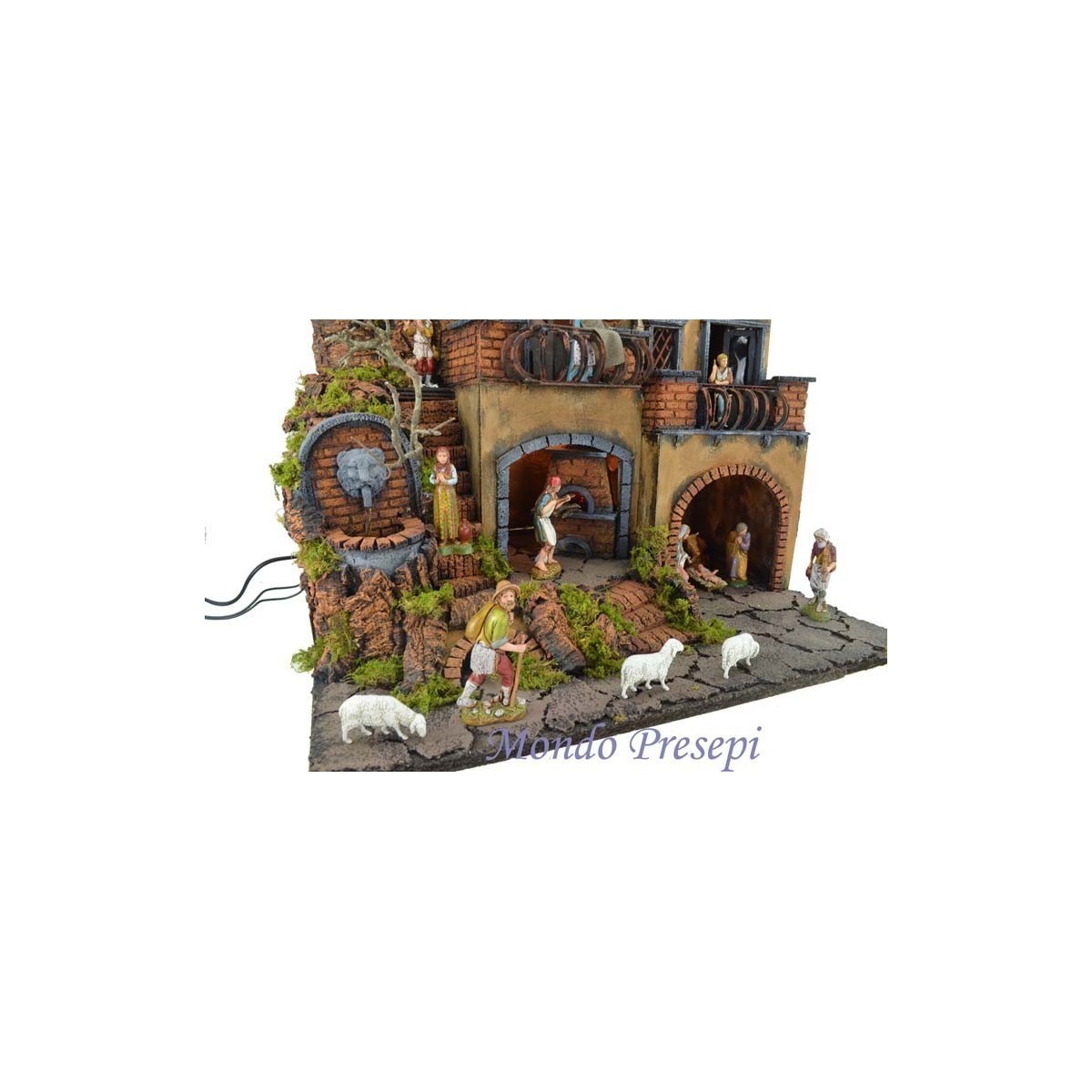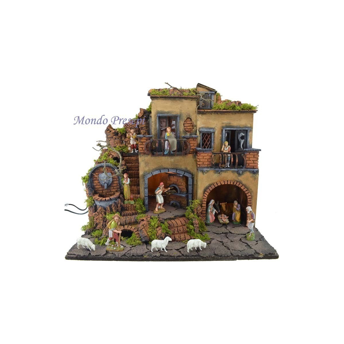 Realizzato in legno e sughero illuminato dotato di fontana e forno con effetto fuoco funzionante a corrente.