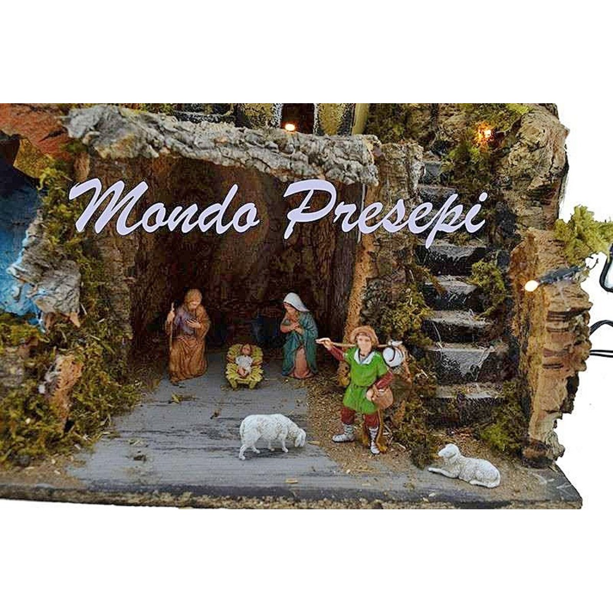 Presepe con statue Landi e ruscello luci cm 42x35x38 h. Mondo