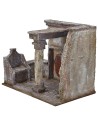 Ambientazione che rappresenta la flagellazione di Cristo. La scena si sviluppa in un foro all'aperto, l'attenzione viene attirata dalla colonna al centro a cui venne legato e flagellato Gesù e dalla poltrona in pietra del giudice. L' ambientazione è adatta a statue di altezza di 9 cm o 10 cm disponibili nei prodotti correlati. L'articolo è stato prodotto in Italia da sapienti mani artigiane con polistirene, legno e sughero.