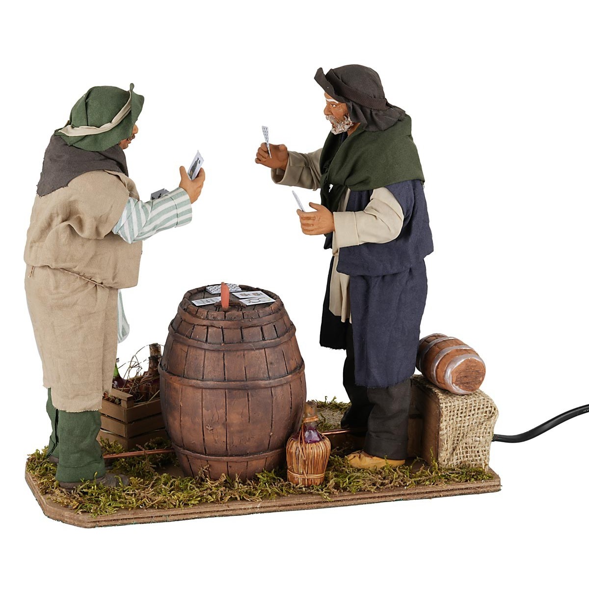 Due uomini di serie 30 cm che con il movimento delle braccia, simulano l'azione di giocare a carte. La statuina è realizzata in terracotta e dipinta a mano in Italia da sapienti mani artigiane con abiti in tessuto ben rifiniti. La figura per il Presepe classico e/o napoletano è realizzata in terracotta ed è funzionante a corrente. Si precisa che i particolari del prodotto possono variare in quanto realizzato artigianalmente.