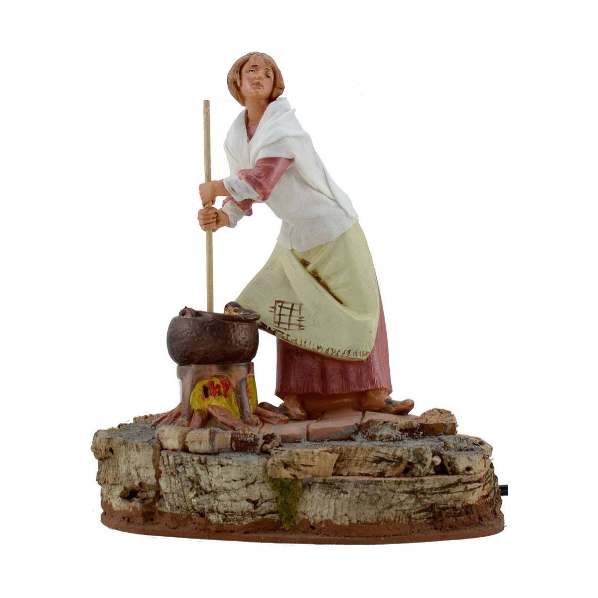 Donna che mescola serie 19 cm Fontanini in movimento con fuoco , funzionante a corrente.