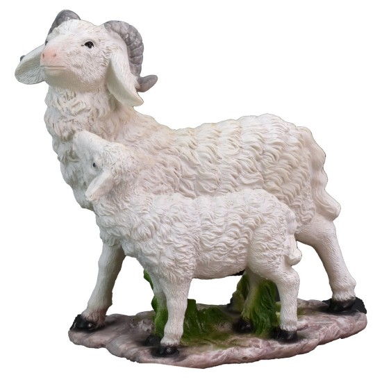 Capra con piccolo, consigliata per statue di altezza 40-45 cm. Il prodotto è realizzato in resina ed è ideale per la creazione di grandi Presepi sia da interno che da esterno.