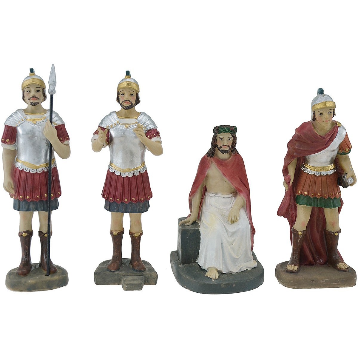 Gesù incoronato di spine, set composto da 3 soldati romani e Gesù, realizzati in resina dipinta. Statue Pasquali utilizzate per ricreare le stazioni della Via Crucis.