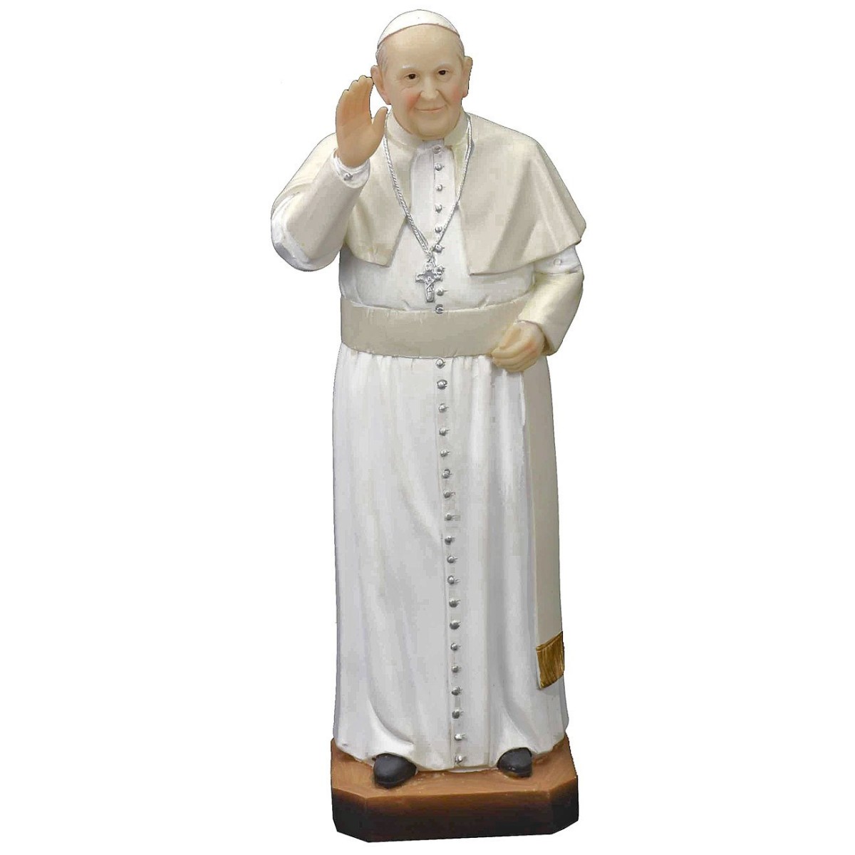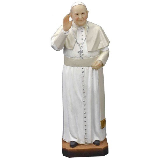 Papà Francesco, il nome scelto in onore di San Francesco d'Assisi patrono d'Italia. La statua è in resina alta 30 cm ed è molto somigliante ai tratti di Papà Bergoglio. La riproduzione è fedele ai parametri papali, infatti, indossa la veste talare bianca con mozzetta, e fascia, anch'esse bianche. Il copricapo è detto zucchetto ed è abbinato al colore degli abiti. Sopra la veste, il Papa indossa la croce pettorale con un cordone dorato. Le mani del Santo Padre rappresentano il gesto di benedizione che fa verso i fedeli.