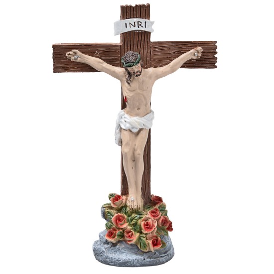 Scena di Gesù crocifisso 10 cm, in resina per presepi pasquali