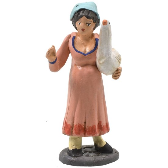 Donna con oca sotto braccio in terracotta, statuina stile Napoletano dipinta a mano. Essendo realizzata artigianalmente possono variare leggermente i colori.